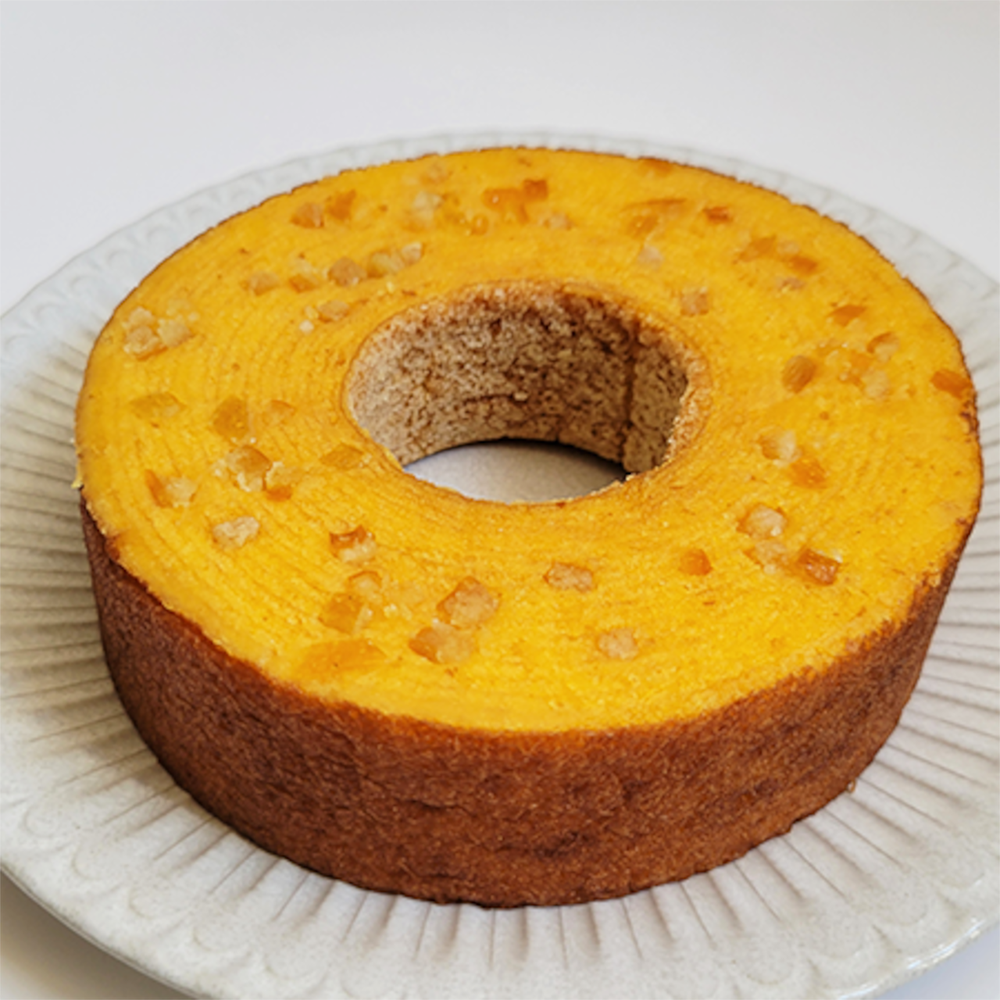 静岡県の特産品三ケ日みかんをふんだんに使用した当店オリジナルのバウムクーヘン。 三ヶ日みかんの果汁・ピューレ・陳皮を使用し、バターの香りの後にほのかに香るみかんの香りが絶品です。